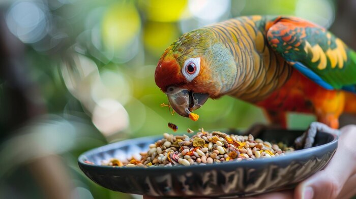 Are the pellets a bit too colourful to your liking? In that case, the bird food probably makes use of artificial colouring agents like E102, E133, or E122. It’s not about the looks, but rather about the potential allergic reactions that these dyes can have on your pet bird. Likewise, it’s a good idea to avoid pellets that make use of preservatives such as ethoxyquin, which is even banned in the EU, or that utilise corn syrup or honey in the pellets’ composition, as these can lead to liver issues and obesity.
